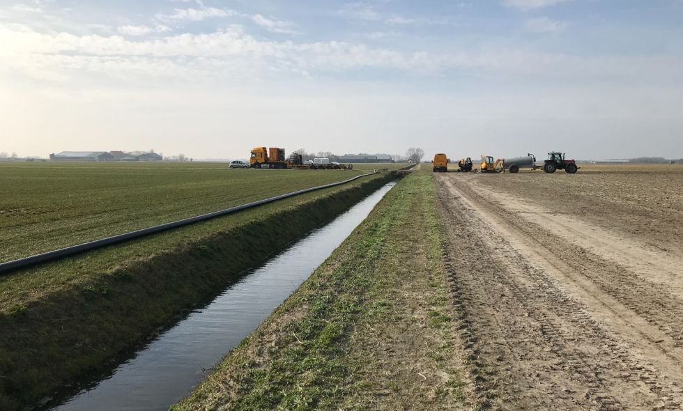 Afgelopen week zijn peilbuizen geplaatst rondom het horizontale filter, waarmee de grondwaterstanden en het zoutgehalte van het grondwater de komende tijd gemonitord kunnen worden. De volgende stap in het project is de pompproef, hierbij wordt de capaciteit van de zandlaag waar het water wordt opgeslagen, verder getest. Ook wordt er een nulmeting (d.m.v. geofysica) gedaan van het nu nog zoute zandpakket rondom het horizontale filter waarmee straks de ontwikkeling van de zoetwaterbel in beeld gebracht worden.